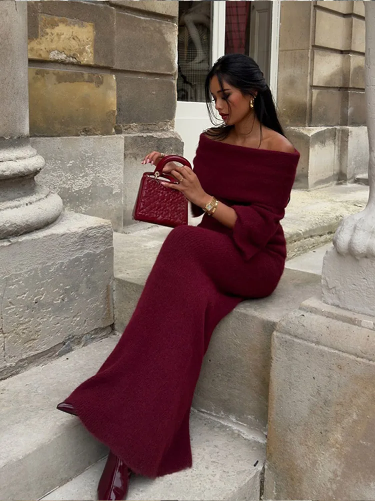 • رقم النموذج: Off Shoulder Knitted Maxi Dresses Women